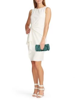 STAUD Bean Ruched Leather Shoulder Bag Cream