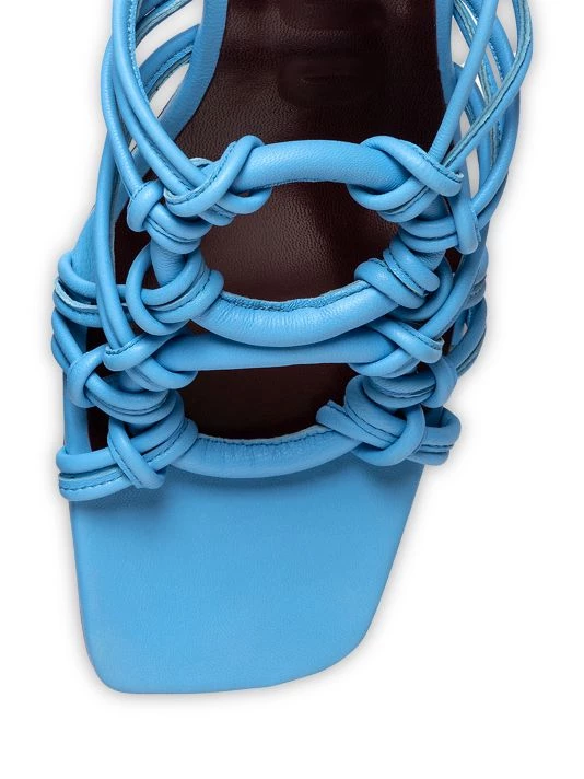 Finished with a trapeze-shaped block heel, STAUD’s Adeline mules are crafted of hand-knotted leather with circular details.