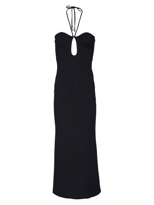 Designed with contoured seams for a figure-skimming look, STAUD’s Bardot dress features a flattering tear-shaped cutout and hammered plates at the neckties.