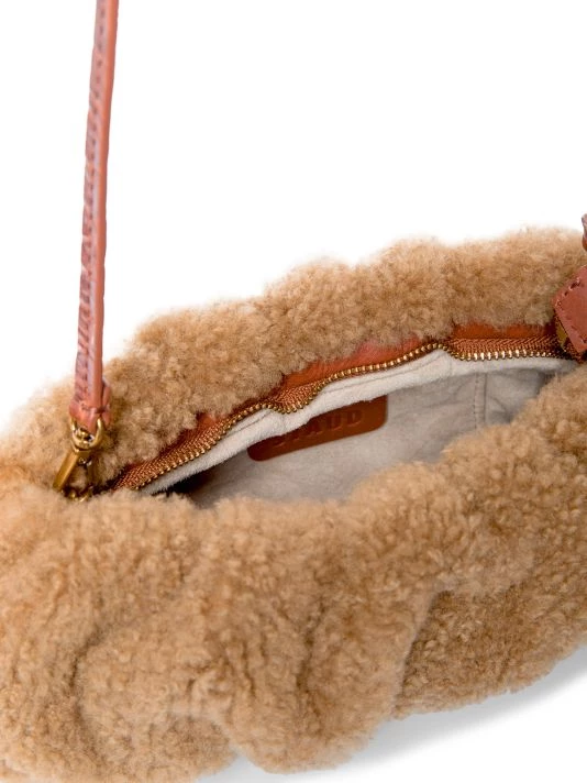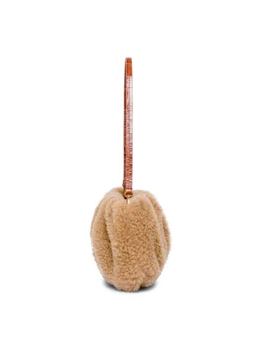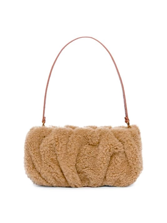 Ruched mini bag rendered in luscious shearling, finished with a slender strap that can be worn on the shoulder or as a wristlet.