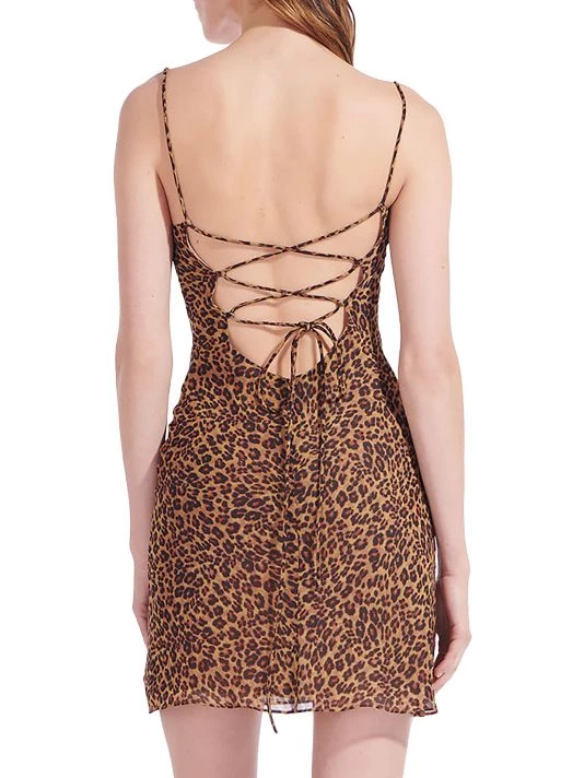 Crafted of flowing leopard-print fabric, the Bellamy minidress by STAUD is finished with a lace-up back.
