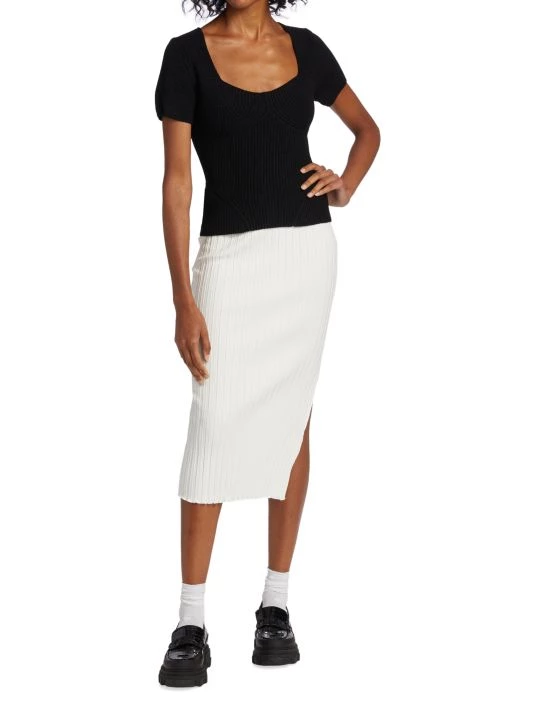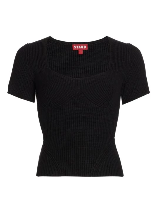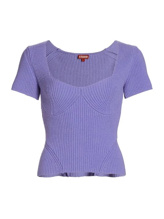 This rib-knit t-shirt is designed with a sweetheart neckline.