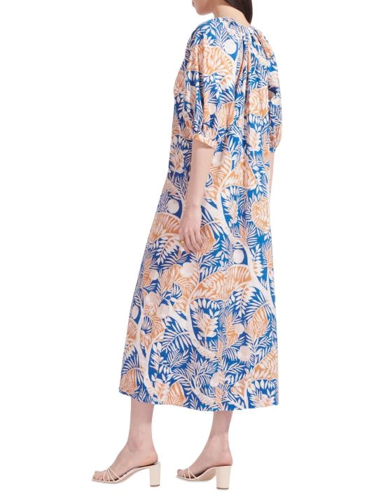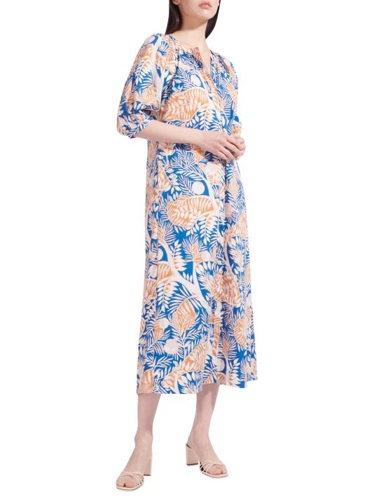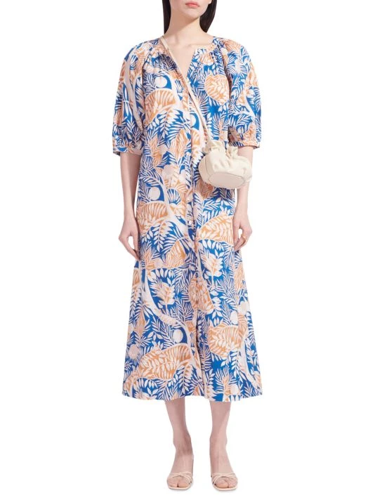 This boxy midi-dress features large abstract leaf patterning and sequined embellishments.