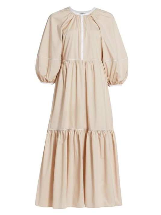 Bohemian in an airy silhouette, this maxi dress flaunts puff sleeves for textural flair.
