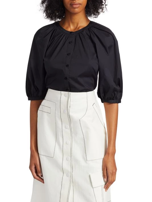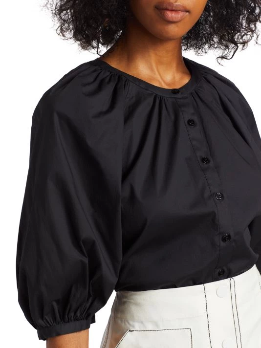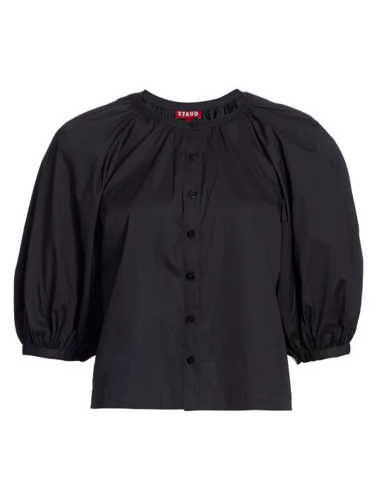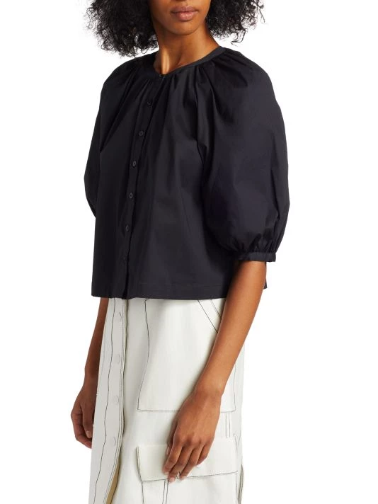 Cut from stretch cotton poplin, this slightly cropped top boasts on-trend puff sleeves.