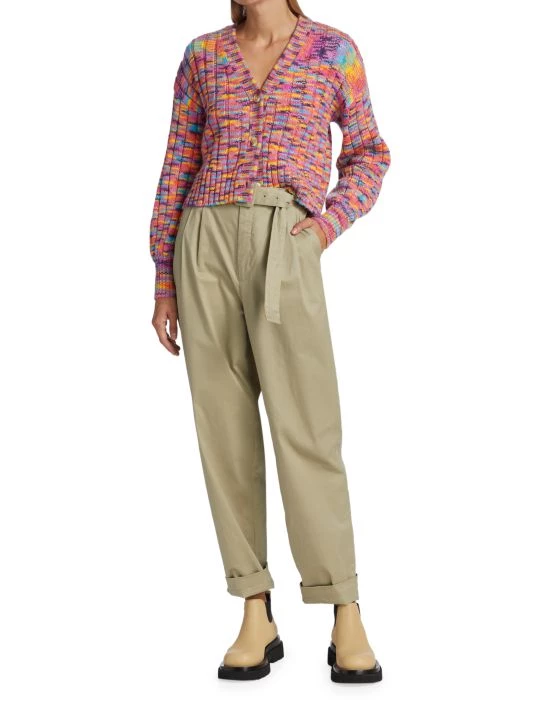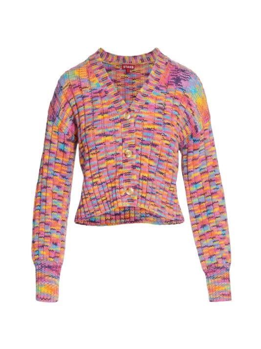 The Eloise knit cardigan features a boxy silhouette with contrasting buttons.