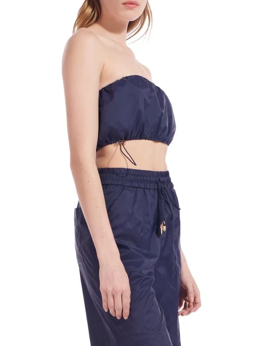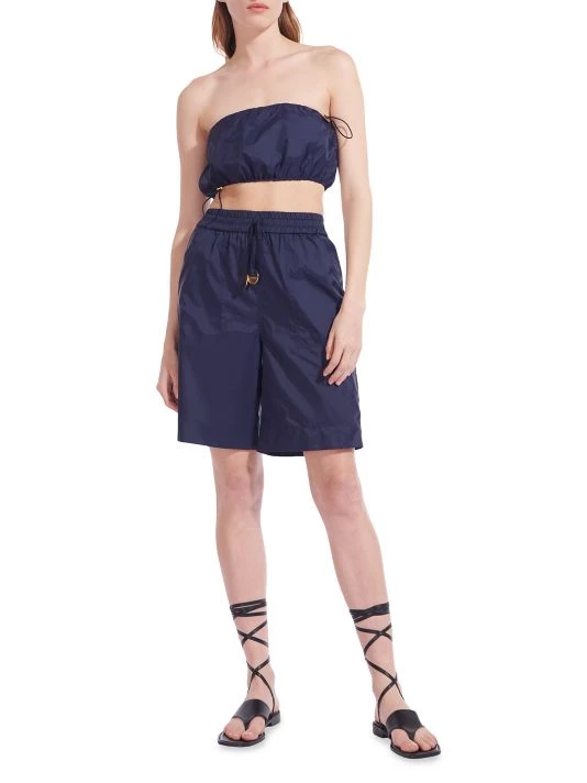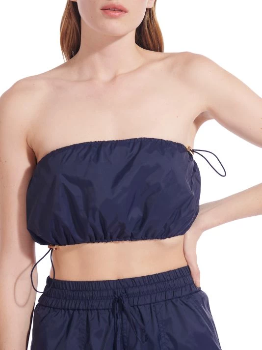 STAUD’s Gigi bandeau top features adjustable drawcords at the neckline and band. Goldtone hardware finishes this nylon style.