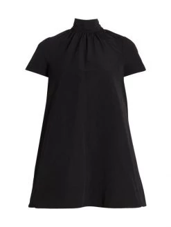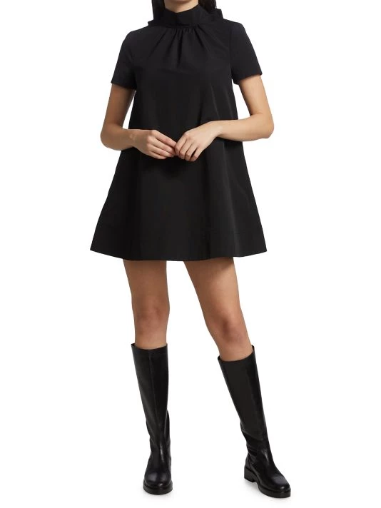 This crepe A-line dress is crafted of a cotton-blend crepe.