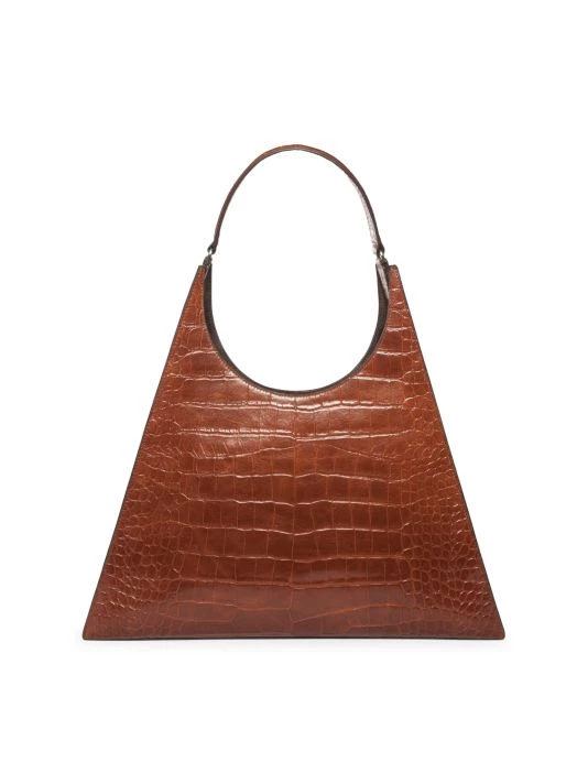 ONLY AT SAKS. Clean lines and a contoured shoulder strap define this croc-embossed leather handbag which comes with a matching sunglasses case.