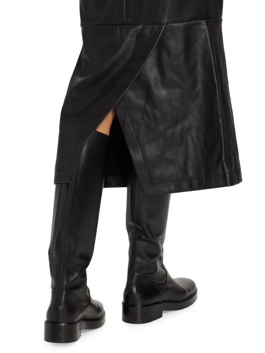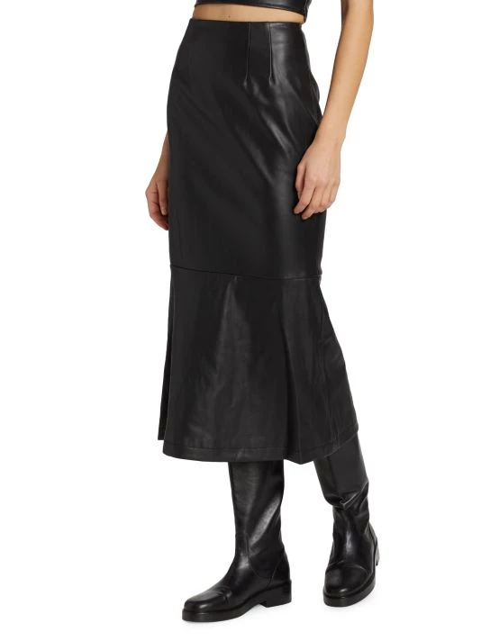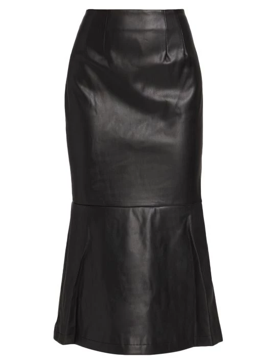The Laurel faux leather skirt by STAUD is designed with subtle folds at the waistband and a romantic fluted hem.