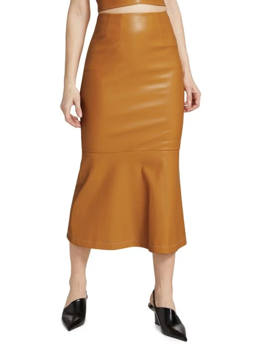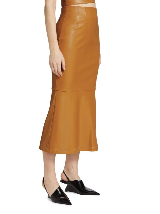 The Lauren skirt by STAUD is crafted of faux leather with a flared hem.