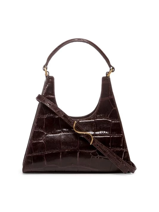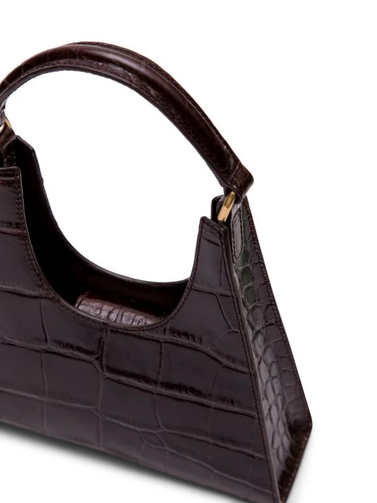 Structured leather top handle bag flaunts a luxurious croc-embossed finish.