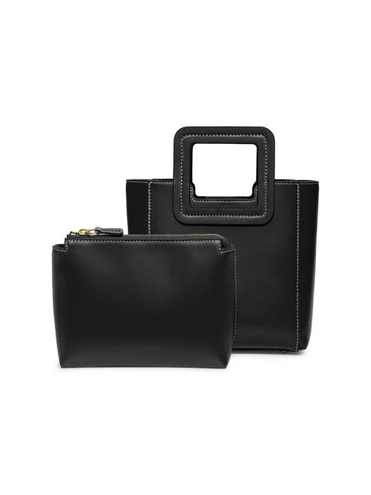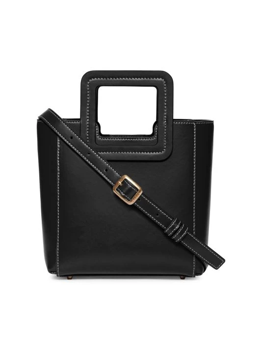 Embrace the mini-bag trend with this petite version of Staud’s signature tote crafted of luxe smooth leather with contrast stitching.