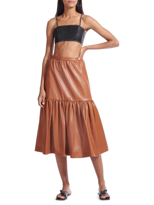 Consciously crafted edgy skirt features a playful tiered hem for added dimension.