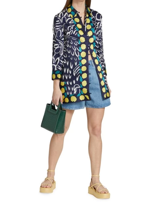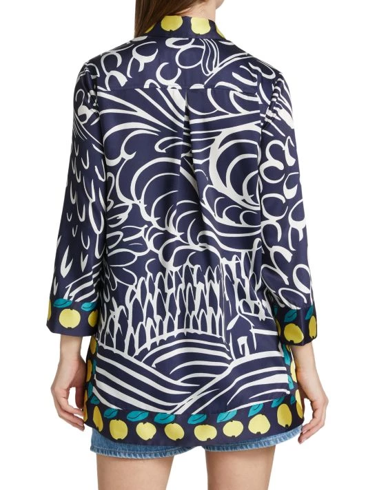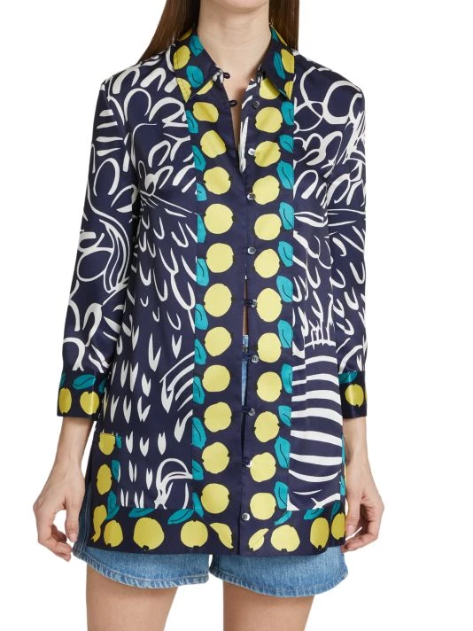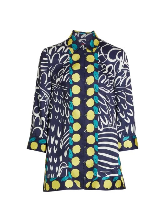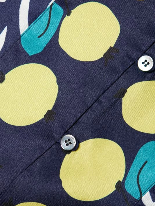 This lively shirt features a tunic-style length, adorned with an illustrated print and lemon motif at the trim.