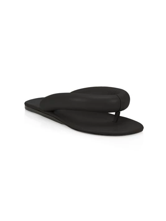 Minimalist flip flops crafted of luxe leather with a modern padded finish.