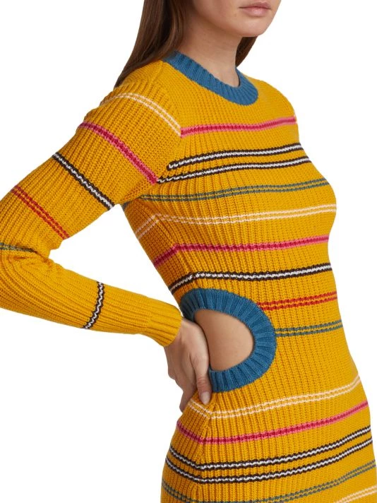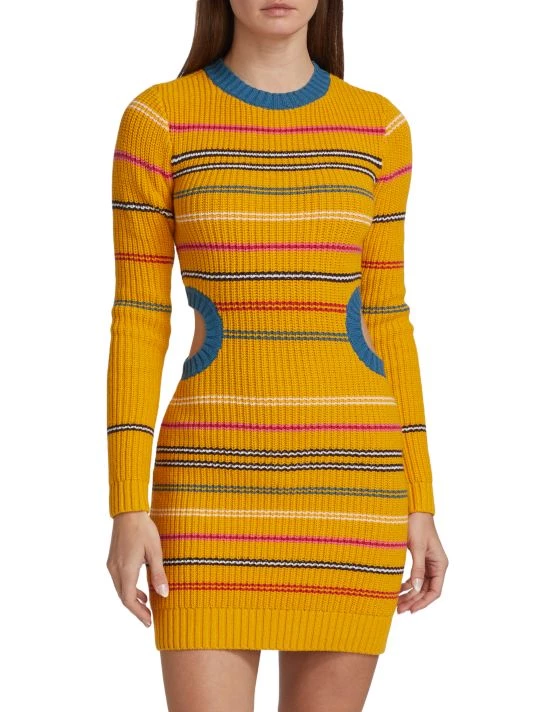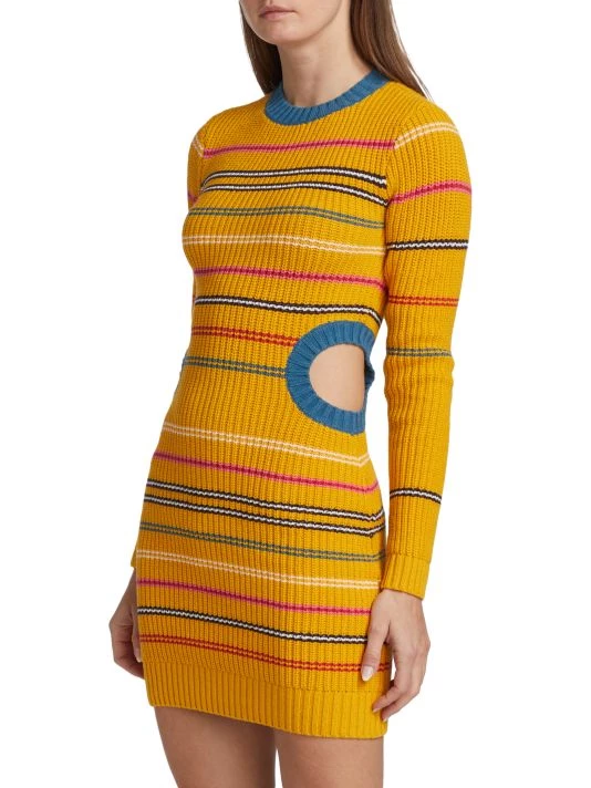 Knit of colorful cotton blend, the Seaway Dress from STAUD is designed with circular cutouts at the waist.