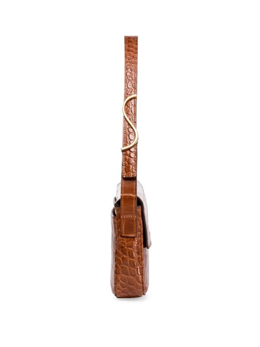 In a glossy croc-embossed finish, this chic leather baguette exudes a 90s-inspired aesthetic.