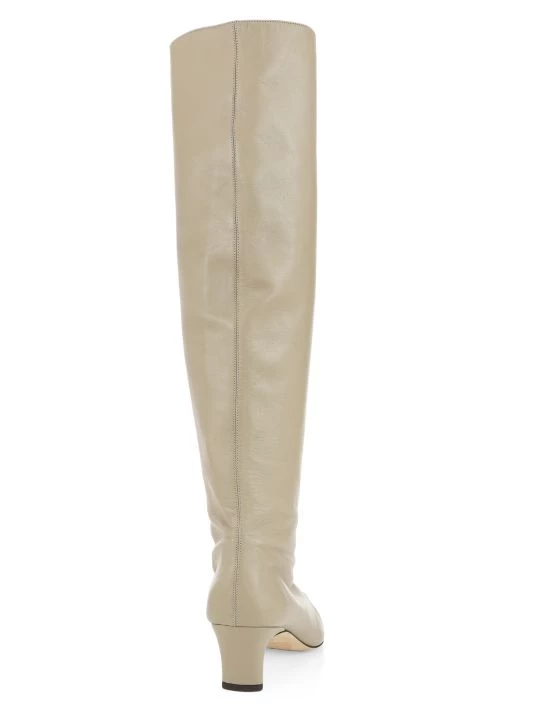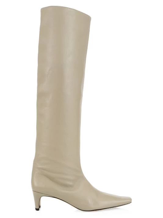 These stacked-heel boots are crafted of rich leather and cut in a leg-lengthening silhouette.