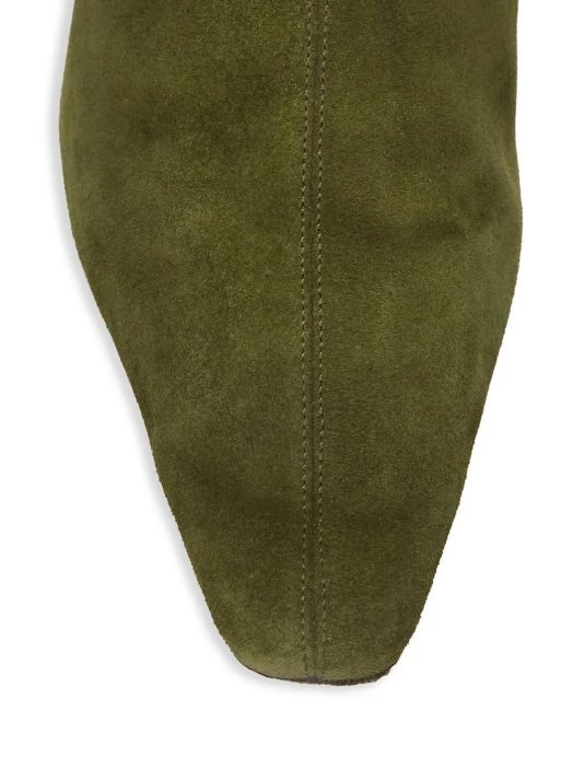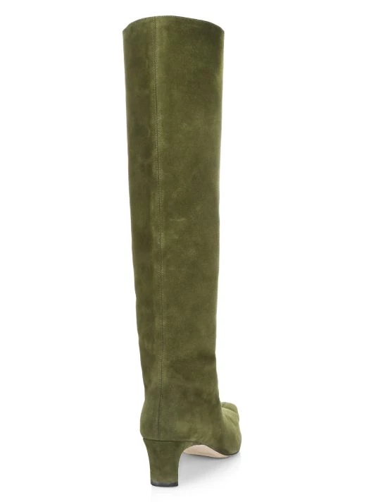 Evoking a vintage-inspired charm, these tall suede boots flaunt an elongated almond toe and kitten heel.