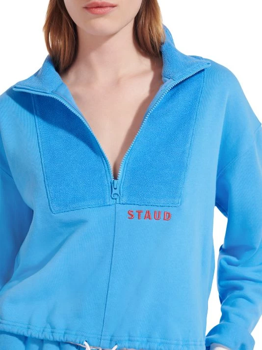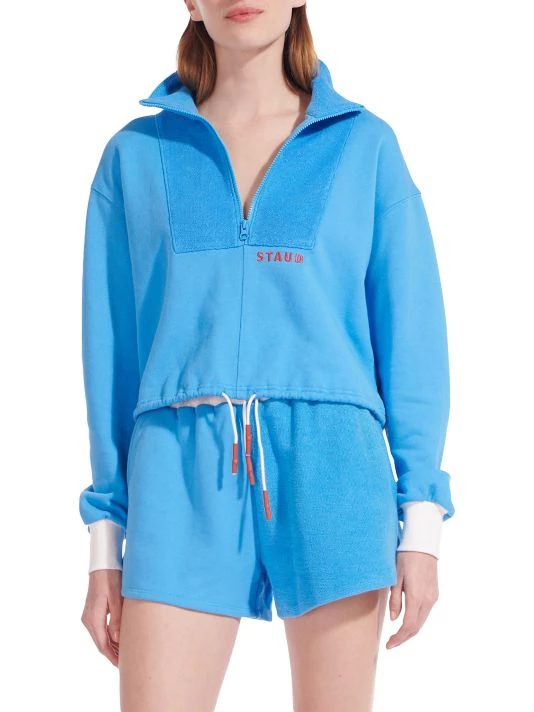 French terry sweatshirt features a half-zip and a relaxed silhouette.